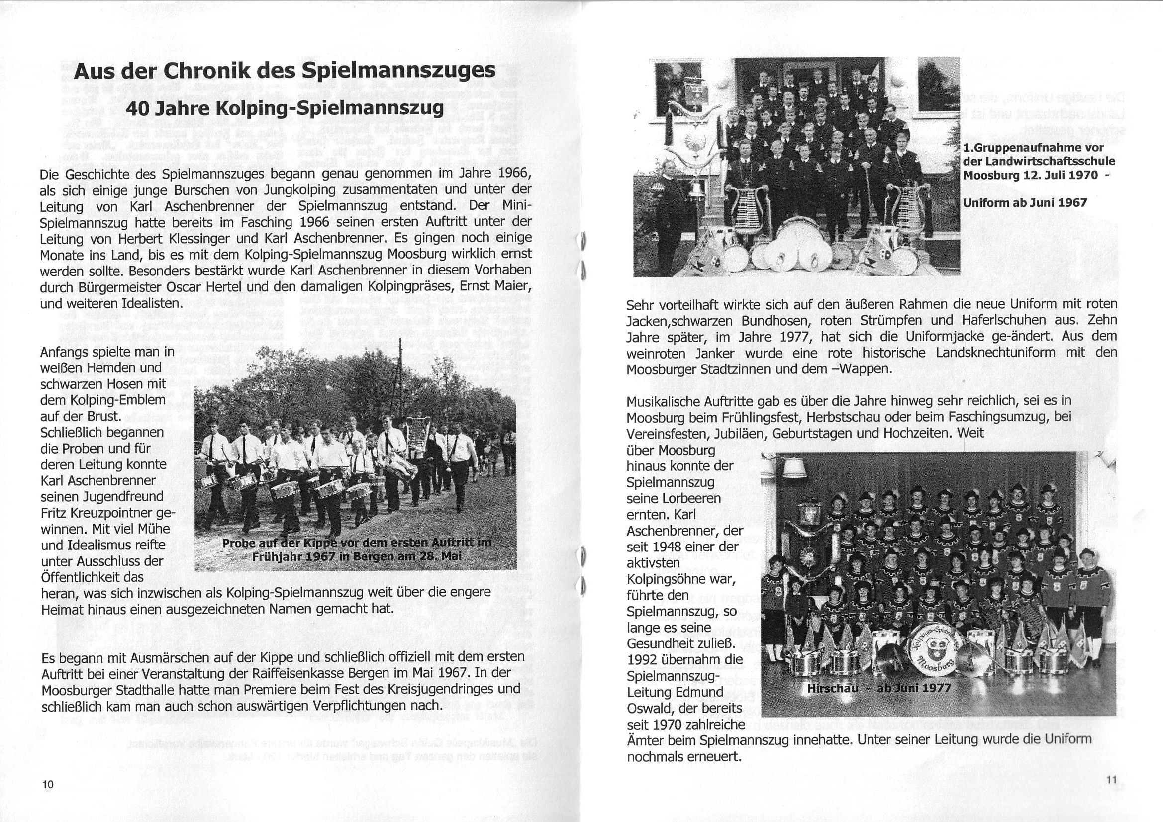 zur Gründung eines Spielmannszugs. Aschenbrenner erinnerte sich an